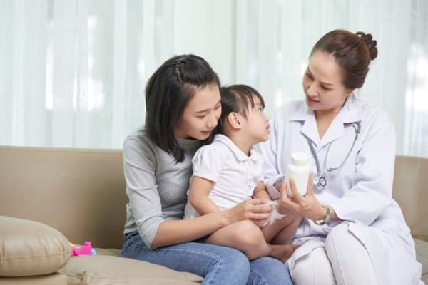 Mẹ nên tham khảo ý kiến bác sĩ để bổ sung đúng liều lượng, ưu tiên sản phẩm dạng xịt hoặc siro dễ hấp thu phù hợp với trẻ nhỏ.